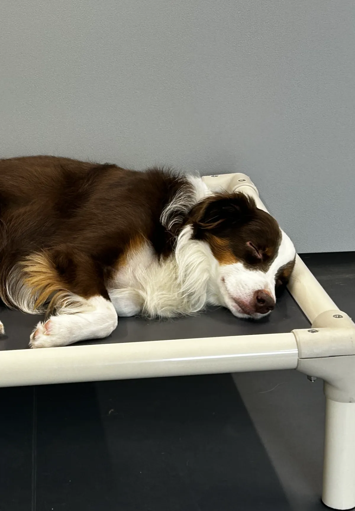 Overnight guests enjoy private suites with comfy KurandaⓇ beds and are monitored with in-crate cameras, sensors, and frequent staff check-ins. During the day, dogs join supervised playgroups, so they’re entertained and well cared for around the clock.